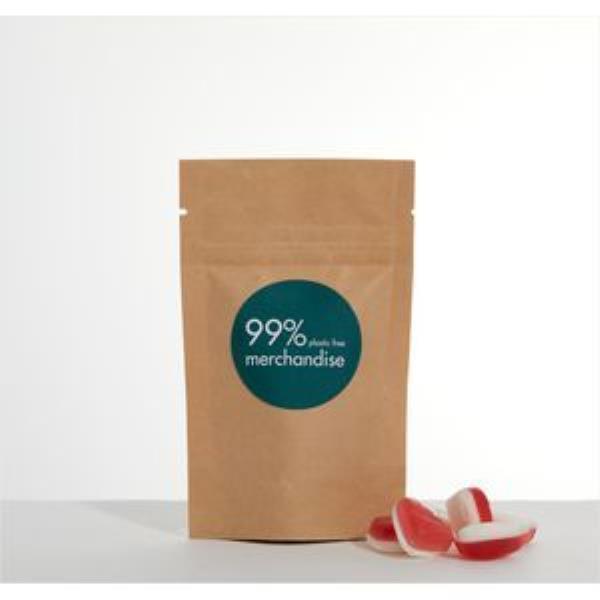 Fun loving Haribo Hearts in branded, biodegradable kraft pouch. A large 50g fill with full colour digital label or direct pad print to create an ethical and fun giveaway.