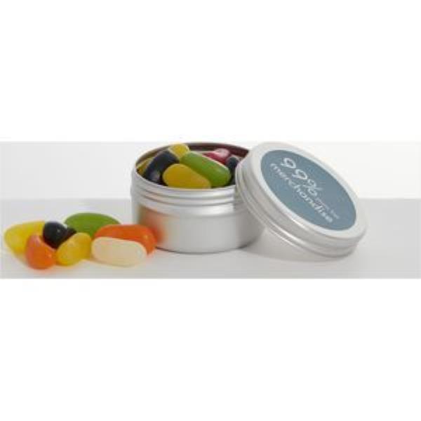 Mouth watering assorted Jelly Beans in branded British Made aluminium jar. A large 50g fill with full colour digital label, laser engraving or direct print to create an ethical and fun giveaway.