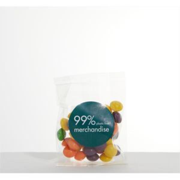 Knock out flavours from an old favourite. A large 50g fill of Skittles in branded compostable/dissolvable sugar cane bag. Full colour digital label to create an ethical and fun giveaway.