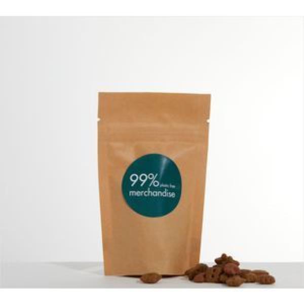 Healthy Cat Treats in branded, biodegradable kraft pouch. A large 50g fill with full colour digital label or direct pad print to create an ethical and fun giveaway.