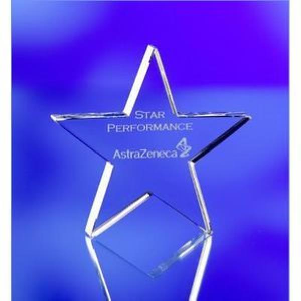 Optical Glass Paperweights - Beautiful glass star paperweights / awards. We can either surface engrave or we can DEEP laser engrave the logo/image internally which means the quality of the image is superb to the extent that we can even engrave a phootgraph on these items.