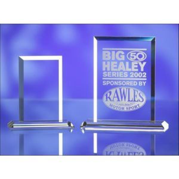 Optical Crystal Glass Award. Size: 170 x 152 x 76mm. Complete with a presentation box. Also available in a larger size. Engraving set up charge applies.