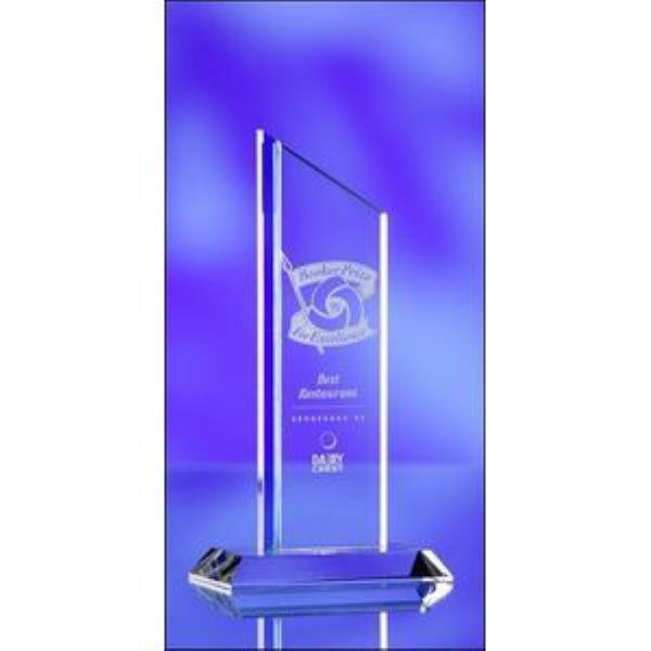 Optical Crystal Glass Award. Size: 245 x 72 x 15mm. Engraving set up charges apply.