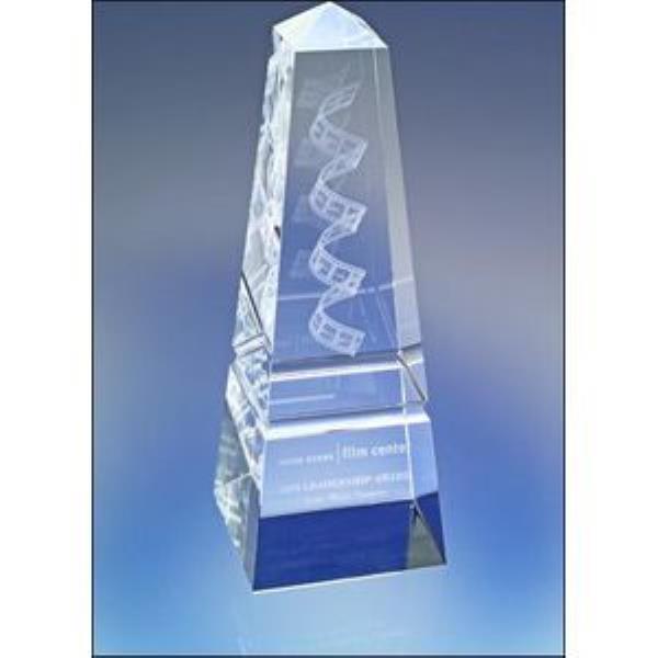 3D laser engraved award. Any image be it a complex engine or simply a company logo can be lasered in 3D within the optical glass block. Hundreds of thousands of pixels make up any one image. The result is a masterpiece of finesse and elegance.