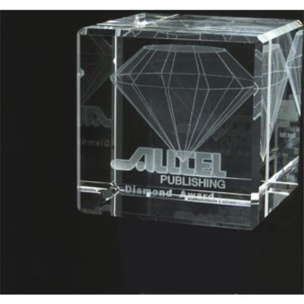3D laser engraved award. Any image be it a complex engine or simply a company logo can be lasered in 3D within the optical glass block. Hundreds of thousands of pixels make up any one image. The result is a masterpiece of finesse and elegance.