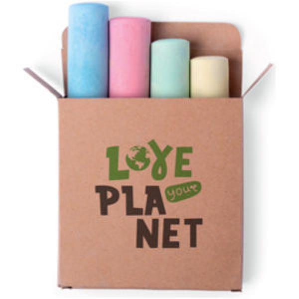 XL size chalk box. Case in recycled cardboard, with 4 chalks in blue, red, green and yellow colour.