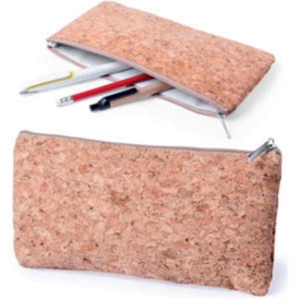 Nature line pencil case in natural cork. Matching colour zipper, chromed puller and inner lining in white colour.