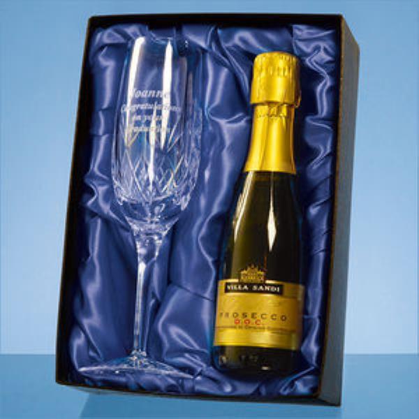 The Blenheim Lead Crystal champagne flute and prosecco set would make an ideal gift for a birthday or graduation. The glass has diamond cut detail and an engraving area which can be personalised with any crest, logo or wording. This great gift set is presented in a satin lined box and is sure to be treasured and enjoyed by the recipient.
