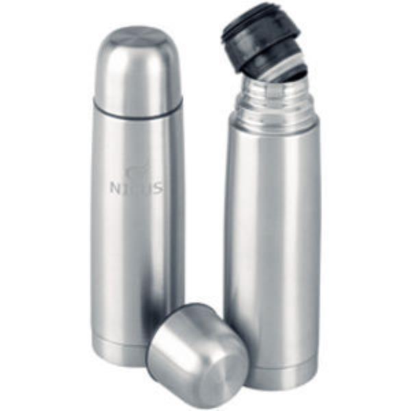 Durable stainless steel vacuum flask.