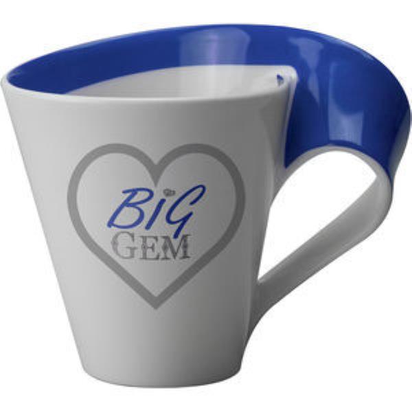 Surely the last word in ultra-modern design, the flowing handle of the Wave mug is a sure fire attention getter, and makes a great print surface. 340ml capacity.