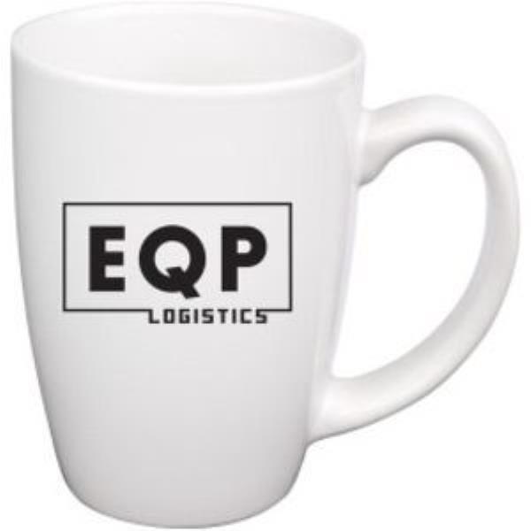 Put your brand on a white background for maximum impact and distribute it to almost any recipient with this 14 oz. glossy white mug. This mug's sleek gloss exterior complements your screen printed logo for easy advertising on a promo that's great for daily use and extended exposure. From trade shows to employee incentive gifts and awards, this mug lets you grow your brand the easy way. Invest in your advertising efforts with this tried-and-true classic!