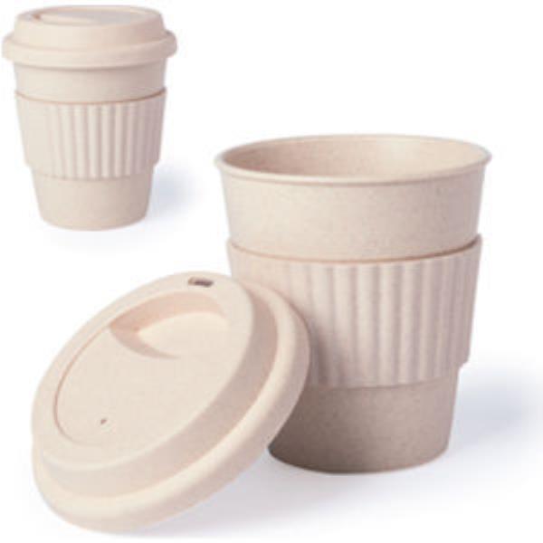 Nature line cup in combination of bamboo and PP fibers. 380ml capacy and body in natrural colour with anti burn area and lid, all of them in matching material and colour. Security dosing lid.
