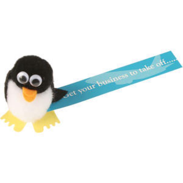 Cute Penguin Logobug with your promotional message printed on Ribbon. Part of our extensive range of Animal Logobugs - makes an ideal give-away for a Zoo or Winter Campaign or a 'Thank-you' for a Charity or Fund-raiser donation.