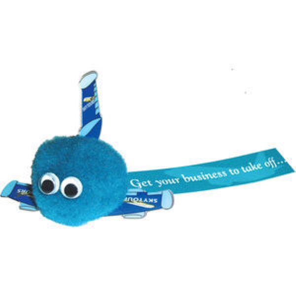 Airplane Advertising Logobug with your promotional message printed in Full Colour on Ribbon. This collectable Logobug is less likely to be thrown away than other promotional products keeping your message in view longer. Choose colour to suit your branding - from a large variety of Pom colours.