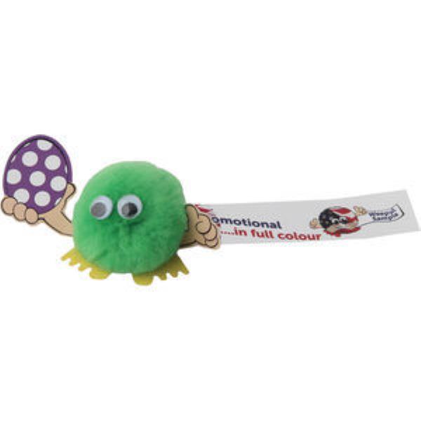 Popular Advertising Logobug with Easter Egg hand Holder - printed with your promotional message on Ribbon. Makes an ideal give-away for a seasonal campaign. Logobug available in a variety of Pom colours to suit your branding.