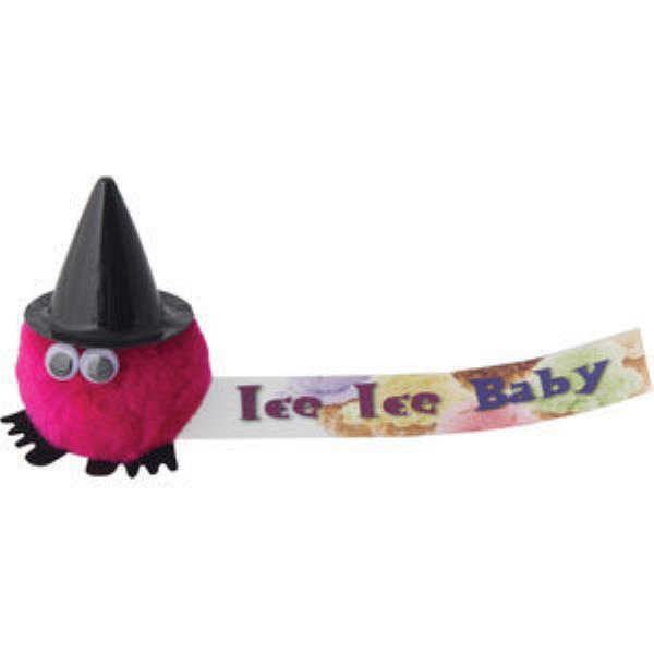 Witch Logobug printed with your promotional message on ribbon. Part of our extensive range of Hatter Logobugs makes an excellent give-away for a Halloween campaign.