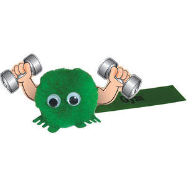 Keep Fit Logobug Holding Dumbbells with your promotional message printed on Ribbon. Part of our extensive range of Hand Holder Logobugs - makes an ideal give-away for a Gym or Health Club Campaign. Choose from a large selection of Pom and Feet Colours to suit your Branding.