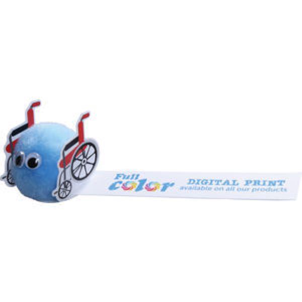 Wheelchair Logobug - with your message printed in Full Colour on Ribbon. Ideal Charity or Fundraiser give-away. Choose from a large selection of Pom colours to suit your branding.