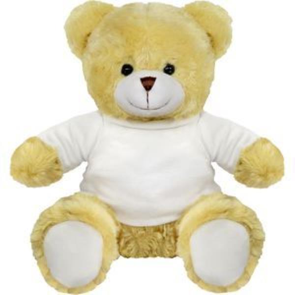 BLANK PLUSH 25 CM SOFT TOY ELIZABETH TEDDY BEAR with White Tee Shirt. Suitable for Sublimation & Tranfer Print. Suitable for 3, Super Soft, High-quality Plush Fur & Glass Studded Eyes, Seated Height 25cm Approx. Available in 3 Sizes, Minimum Quantity: 10.