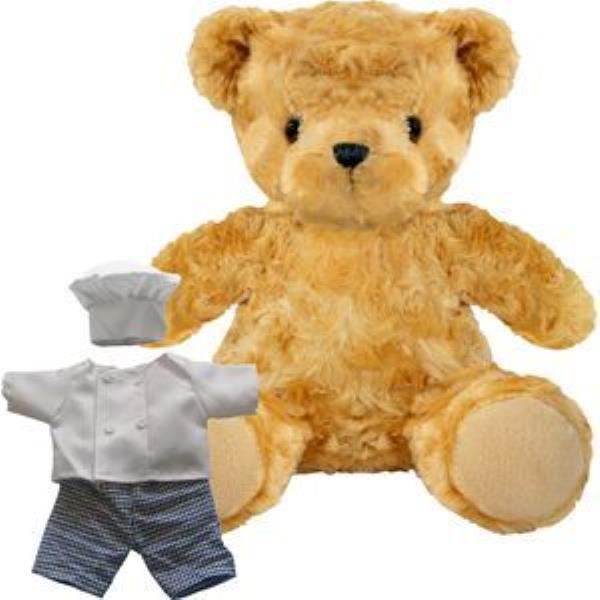 BLANK PLUSH SOFT TOY 19CM VICTORIA TEDDY BEAR with Chef Outfit. Victoria Plush Toy Bear Suitable for Age 3. has Luxurious Rose, Swirl Embossed Plush Fur & Glass Studded Eyes. White Hat & Jacket, Gingham Trousers, Sitting Height 19cm Approx. Minimum Quantity: 10.