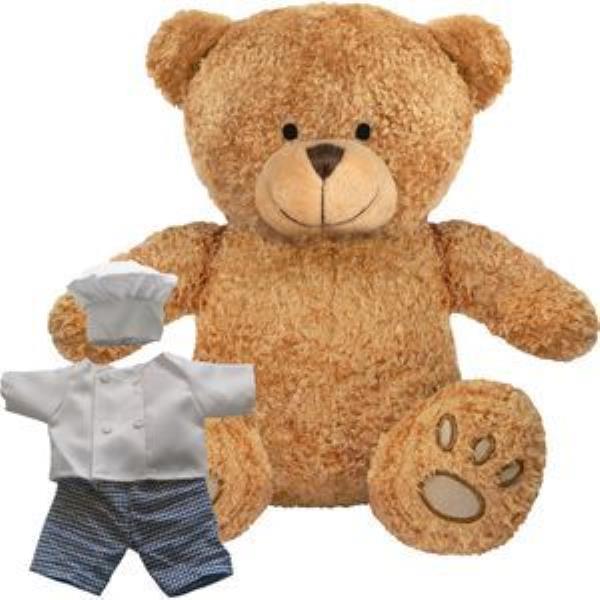 BLANK PLUSH SOFT TOY EDWARD I TEDDY BEAR with Chef Outfit. Suitable for All Ages, Machine Embroidered Paws & Facial Features, White Hat & Jacket, Gingham Trousers, Seated Height 22cm Approx, Brown Colour Fur - Available in Two Colours. Minimum Quantity: 10.