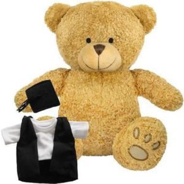 BLANK PLUSH SOFT TOY EDWARD I TEDDY BEAR with Gradution Outfit. Suitable for All Ages, Machine Embroidered Paws & Facial Features, Black Mortar Board Cap & Graduate Gown, Seated Height 22cm Approx, Brown Colour Fur - Available in Two Colours. Minimum Quantity: 10.