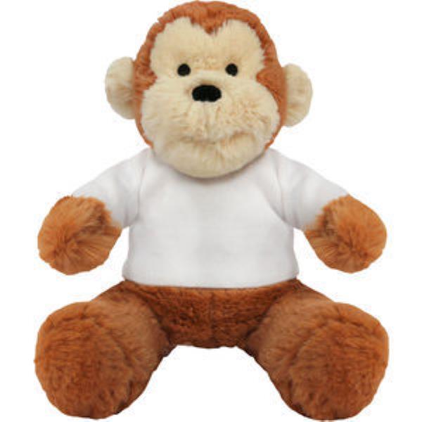 BLANK PLUSH SOFT TOY 20CM MAX MONKEY with White Tee Shirt. Suitable for Sublimation & Tranfer Print, Max Monkey Plush Toy Suitable for All Ages. with Machine Embroidered Eyes. Super Soft Luxury Fur, Sitting Height 20cm Approx - Available in 2 Sizes. Minimum Quantity: 10.