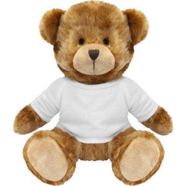 BLANK PLUSH SOFT TOY CHARLES TEDDY BEAR with White Tee Shirt. Suitable for Sublimation & Tranfer Print, Suitable for Age All Ages, Jointed Arms & Legs, Machine Embroidered Facial Features, Sitting Height 20m Approx, Standing Height 28cm Approx. Minimum Quantity: 10.