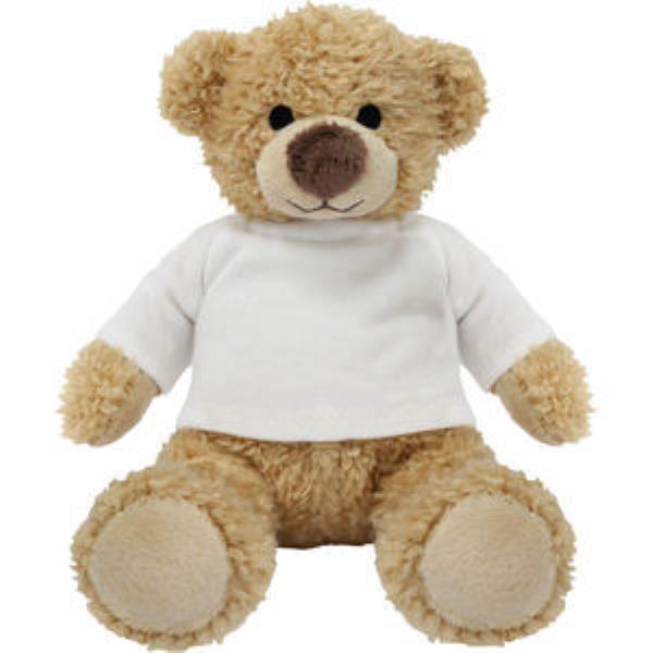 BLANK PLUSH SOFT TOY HARRY TEDDY BEAR with White Tee Shirt. Harry Plush Toy Bear - Light Brown Plush Fur, Suitable for All Ages, Suitable for Sublimation & Tranfer Print, Machine Embroidered Facial Features, Seated Height 15cm Approx, Minimum Quantity: 10.