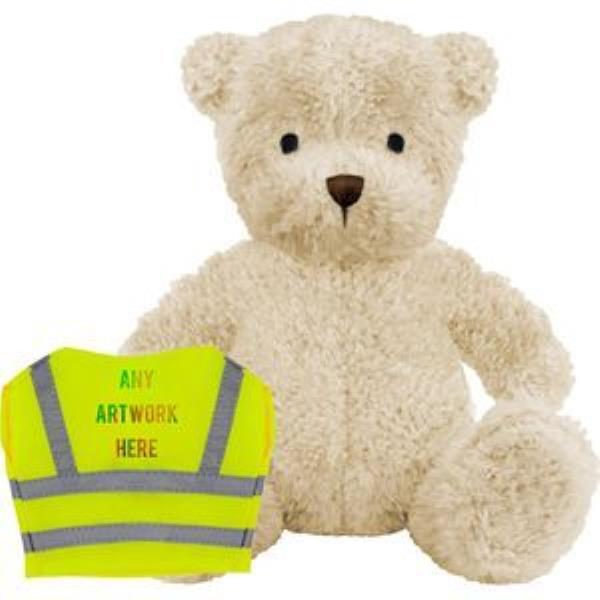 PRINTED PROMOTIONAL SOFT TOY JAMES III TEDDY BEAR with Hi-vis Vest. Branded to Your Specification & Personalised in Full Colour. James Iii Plush Toy Bear, Suitable for All Ages, Machine Embroidered Facial Features, Yellow with Silver Reflective Stripe, Seated Height 17cm Approx, White Colour Fur - Available in 3 Colours. Minimum Quantity: 10.