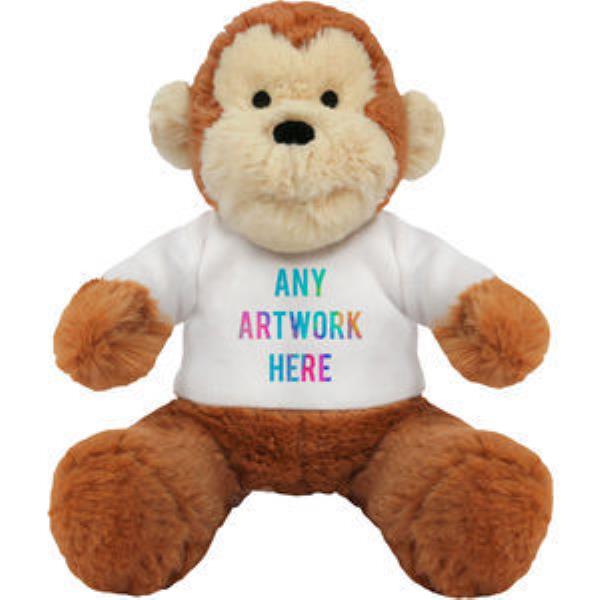 PRINTED PROMOTIONAL SOFT TOY 20CM MAX MONKEY. Branded to Your Specification & Personalised in Full Colour. Max the Monkey Plush Toy Suitable for All Ages. with Machine Embroidered Eyes. Sitting Height 20cm Approx. Minimum Quantity: 10.