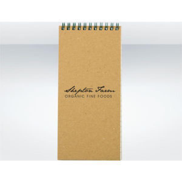 The Green & Good Half width A5 jotter pad, wire bound to top edge. Natural Card covers