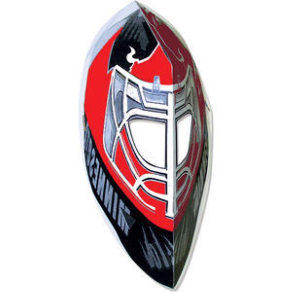 HOCKEY MASK WITH ELASTIC. 3D hockey mask, great for sports, parties and events. Custom printed, UV coated with high gloss finish on front & uncoated on back. Mask made from 14 pt. high density white paper board with elastic attached. Four colour processes minimum 1,000 quantities.