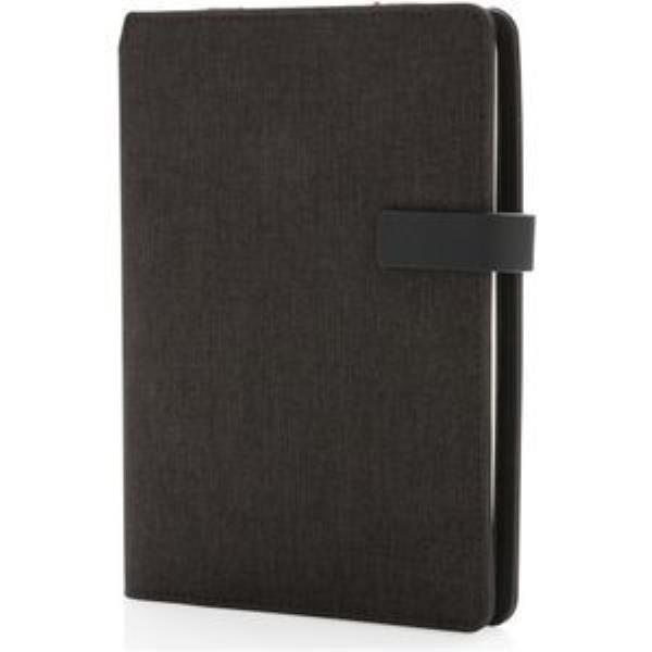 Refillable A5 notebook sleeve with intelligent organization system for gadgets inside. Store your pen into the spine. Rubberized woven elastics can hold up to 5.8 inch gadgets for instance iphone 7 Plus or galaxy S8. 128 pages of 80g/m2 inside. Cream coloured pages. Registered design