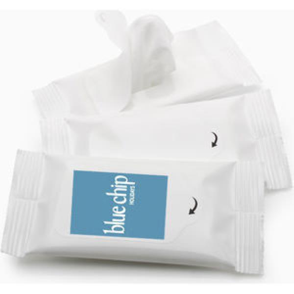 Pack of 5 wipes in a resealable White pack. Available in other coloured packs on request subject to minimum order quantities