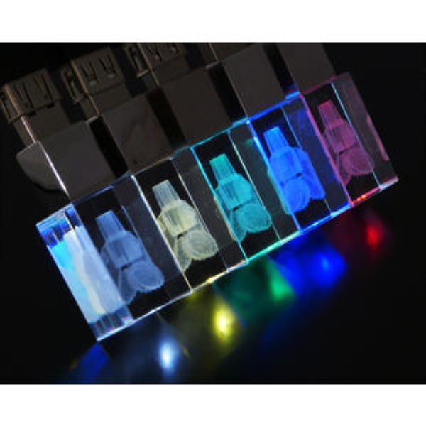 USB Flashdrive with 3D image inside lit by LED light - Red, blue, white or green and brushed stainless steel metal lid with matt finish