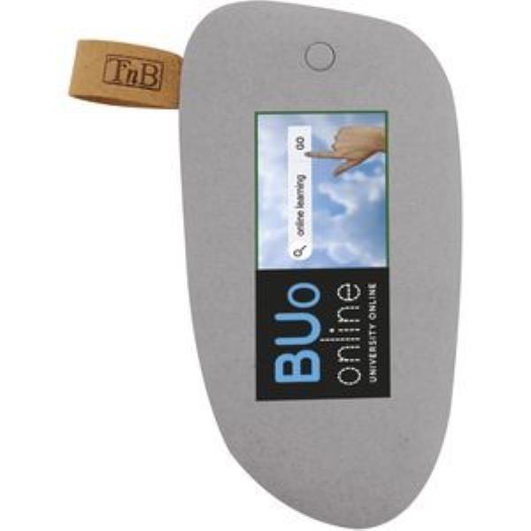 Compact 4000 mAh power bank in the shape of a stone. Battery level is indicated with 4 lights. Includes micro USB cable.