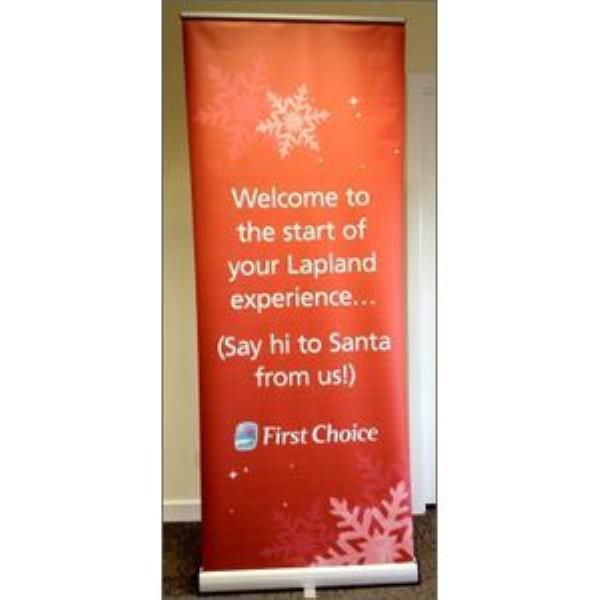High Quality Pull Up Roller Banner Printed on a Durable Grey Backed PVC. An Instant Way of Promoting Brand at Exhibitions Events & for Retail Use. Padded Carry Case Included Rigid Supports & Fully Retractable. Size: 85cm x 200cm. Printed Full Colour UV Single Sided.