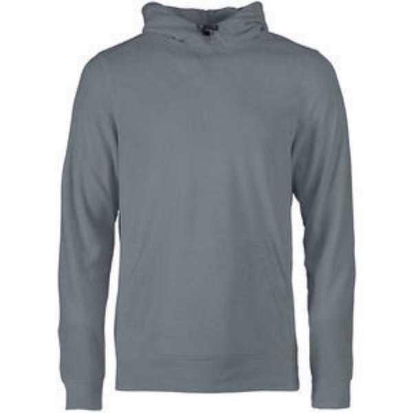 Microfleece hoodie sweater made in fabric to be active in. Front kangaroo pocket and elastic drawstring at hood.