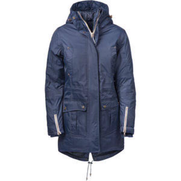 Parka jacket in waterproof and breathable outer fabric. Equiped with practical pockets at front and inside jacket. Quilted inside lining with Harvest print all over. Adjustable drawstring at bottom hem and hood. Zipper at bottom sleeve with rib inside. 2-way zipper at front.