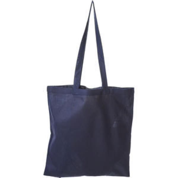 Navy 4.5oz cotton shopper with long handles. Size of bag is 380 x 420 mm and print area is 280 x 280 mm.