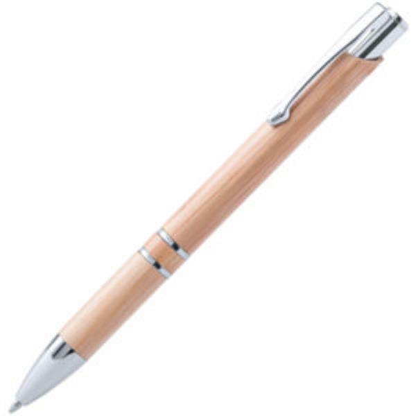 Nature line ball pen with body in bamboo wood. Pushup mechanism, with diecut clip and details in chrome finishing. Jumbo cartridge and black ink refill.