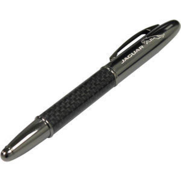 Stylish carbon fibre barrel rollerball with gunmetal trim and pull off gunmetal cap. Parker style black ink refill.