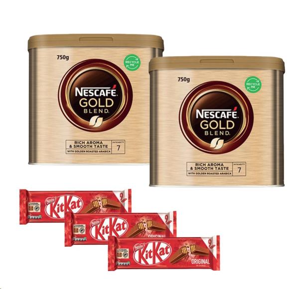 Nescafe Gold Blend Coffee 2 x 750g Tin and 3 Nestle KitKat Milk Chocolate 2 Finger (Pack of 9)