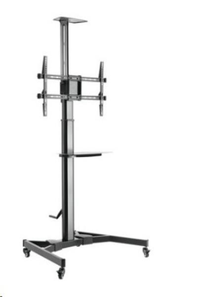 This versatile floor stand is easily adjustable in height, reaching up to 155cm from the centre of the VESA mount, enabling you to achieve the perfect viewing angle for your audience. It is designed to accommodate screens ranging from 37 to 70 inches and has a load capacity of 50kg for the screen itself. Additionally, it can support a multimedia tray and a beamer tray, each with a capacity of 5kg.