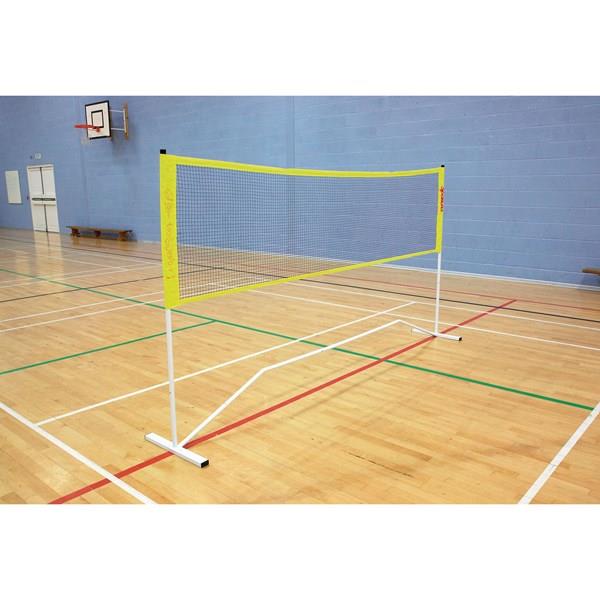 Ideal to as a 3m or 6m mini tennis or badminton net. Supplied in its own easy to carry bag, the metal parts are number coded so the frame takes only moments to put together. The net is sleeved at each end to provide a perfect taut fit. Use at full height of approximately 1.55m for badminton or remove 1 pole each side to set at 0.8m for mini tennis. Note: The 6m set includes both a 3m and 6m net. Note: The 6m set includes both a 3m and 6m net.
