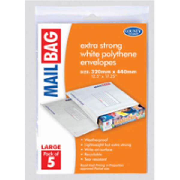 County Stationery Mail Bag Polythene Envelopes x5 White Large 320x440mm (Pack of 10) C262