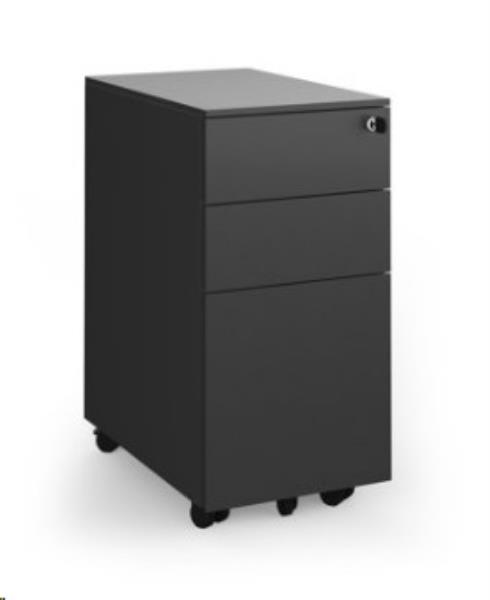 Steel 3 drawer narrow mobile pedestal - black