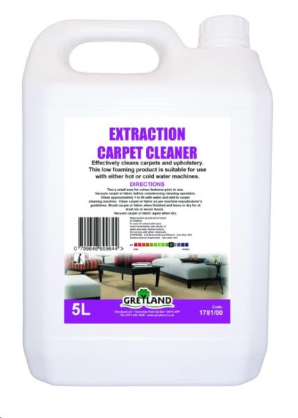An effective cleaner of carpets and upholstery, this low foaming product is suitable for use with either hot or cold water via a carpet cleaning machine.