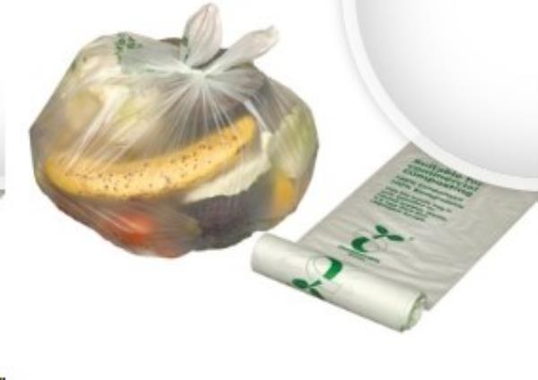 Compostable bag manufactured from a blend of cornstarch, vegetable oil and compostable polyester materials EN13432 compliant Capacity: 30 litres Size: 22 x 24 inches Pack of 24 rolls of 10
